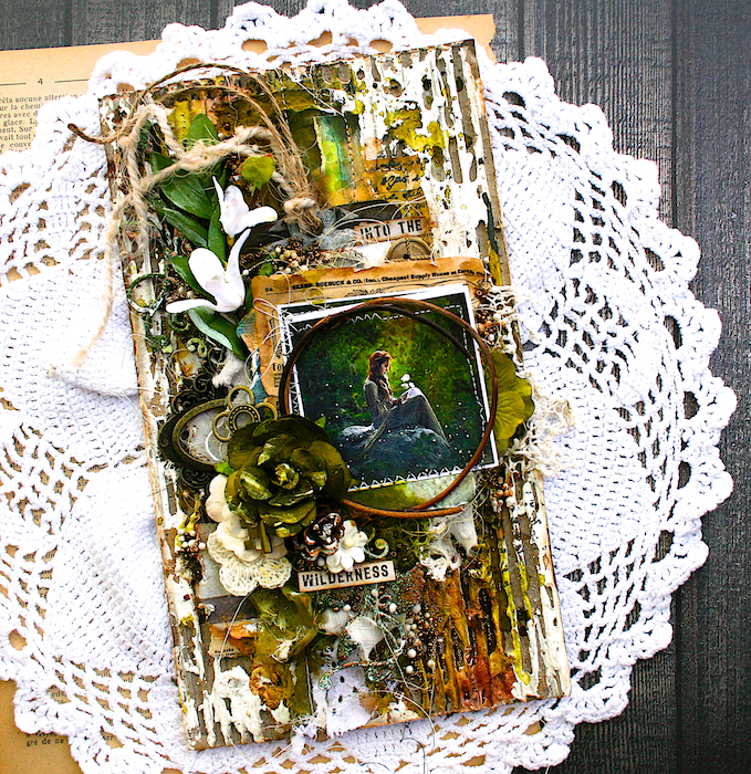 I started with a piece of old plain cardboard....just by adding lots of lace, vintage